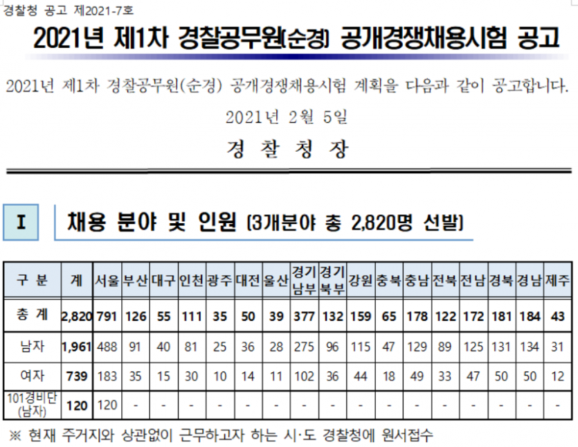 21년 제1차 경찰공무원(순경) 공개경쟁채용시험 공개 페이지 정보 작성자 노샘 댓글 0건 조회 5,928회 작성일 21-02-06 21:50 본문 21년 제1차 경찰공무원(순경) 공개경쟁채용시험 공개 사이버경찰청 원서접수 경찰청 인터넷 원서접수 (police.go.kr) 목록 이전글2021년 노관호 경찰면접 강의일정은 3월 9일 화요일 오후 13시 이전까지 공지예정 21.03.07 다음글2020년 경찰 2차 면접 10일 준비법 20.11.15 댓글목록 댓글목록 등록된 댓글이 없습니다.